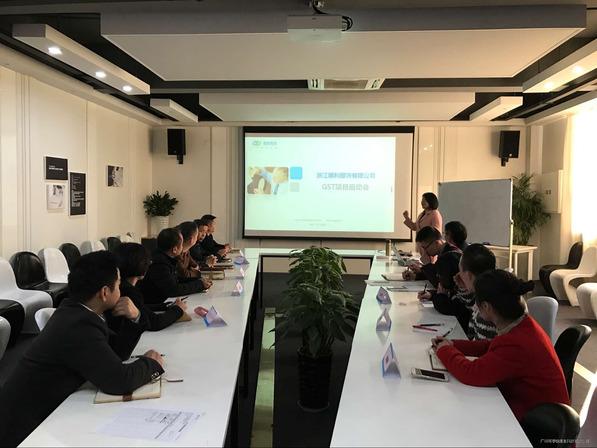 通过近3个月的沟通,终娜利服饰确定于3月6日正式启动GST标准化管理项目。娜利服饰此次GST项目的启动主要目的分为两个方向, 是解决前端成本部的成本管理,包括面料的面辅料的成本管理、加工的成本管理、特殊工艺及外发工艺的成本管理,通过系统各个模块的不同授权,终形成整体成本的管理与控制及快速反应。第二个方向是生产环节的运用,首先解决的是标准工时的问题,通过系统改变原有测时的方式,进而通过标准工时进行生产线的排位,来调整生产线的平衡率,减少生产线分工大调整的现象。同时,基于标准工时来规范工价体系,提升工资发放的合理性与及时性。