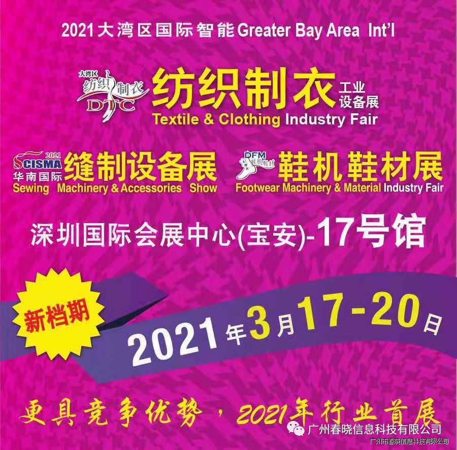 欢迎参观2021大湾区国际智能纺织制衣工业设备展DTC、华南国际缝制设备展SCISMA??优德88科技将于3月17-20日在深圳国际会展中心(宝安新馆)举行,展览规模5万平方米,逾450家知名企业同台亮相,向业界展现当今世界纺织制衣制鞋最新智能技术及设备,响应国家双循环号召,与大家共同迎接市场复苏旺季。